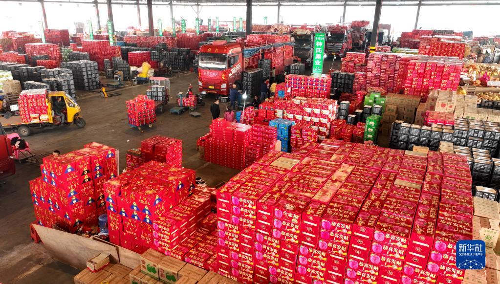 春節臨近,廣西柳州市各水果批發市場里一派繁忙景象,隨處可見工人裝卸水果的忙碌身影,商家籌備貨源,滿足節日市場供應。