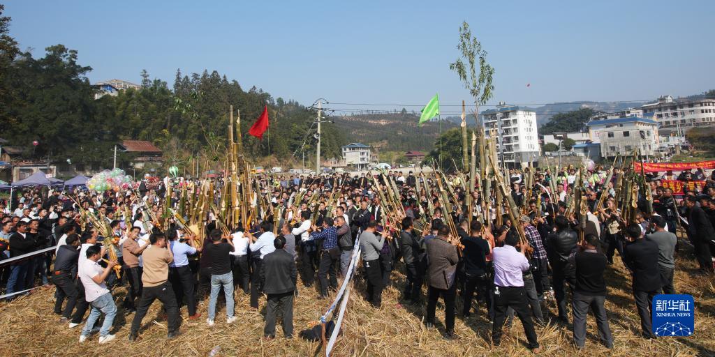 當(dāng)日,廣西融水苗族自治縣良寨鄉(xiāng)舉辦傳統(tǒng)蘆笙節(jié),各族群眾歡聚一堂,開展蘆笙踩堂和蘆笙比響等活動(dòng),為山鄉(xiāng)增添濃濃的喜慶氣氛。