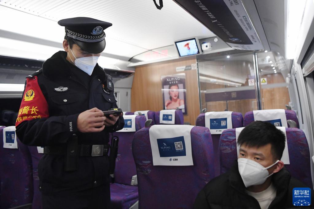 1月9日,白旭偉在G2686次動車組列車上核驗旅客身份信息。