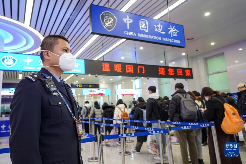 1月9日,濟南出入境邊防檢查站民警在現(xiàn)場執(zhí)勤。