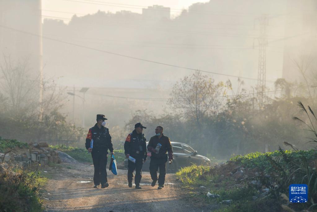 1月8日,鐵路警察王云(中)、謝源(左)與鐵路巡防員進行線路安全巡查。