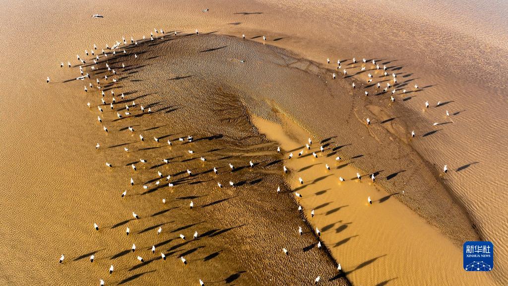 這是2022年3月2日在山東黃河三角洲國家級自然保護區拍攝的東方白鸛(無人機照片)。