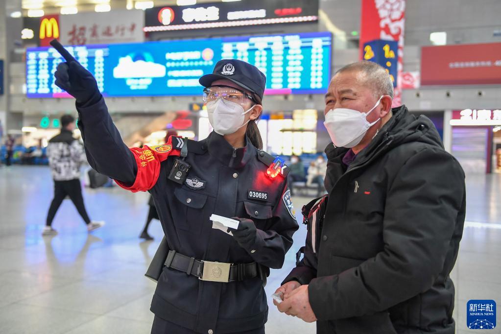 春運期間,長春站客流持續增加。朱榮超和同事認真執勤,守護旅客出行平安。