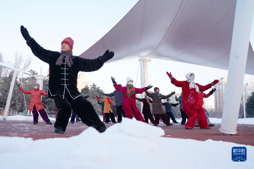 2022年1月2日,市民在哈爾濱市一個公園內健身。