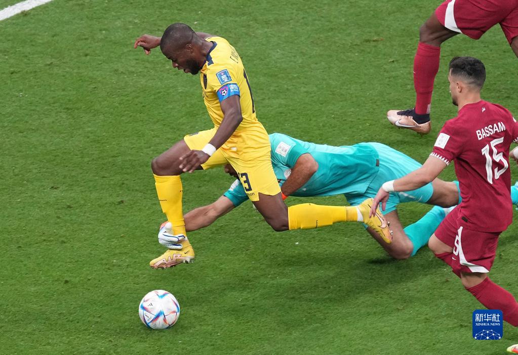 當(dāng)日,在海灣球場(chǎng)舉行的2022年卡塔爾世界杯揭幕戰(zhàn)中,厄瓜多爾隊(duì)以2比0戰(zhàn)勝東道主卡塔爾隊(duì),恩納·瓦倫西亞在本場(chǎng)比賽中獨(dú)中兩元。