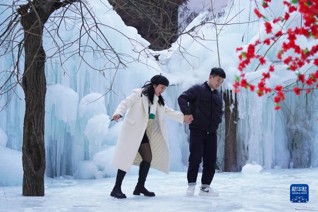 時值臘月,河北省邢臺市西部太行山區(qū)出現(xiàn)冰瀑景觀。當?shù)鼐皡^(qū)利用自然資源,推出冰瀑游、冰雪樂園等冬季旅游項目,吸引游客前來體驗冰雪樂趣。新華社發(fā)(田曉麗 攝)