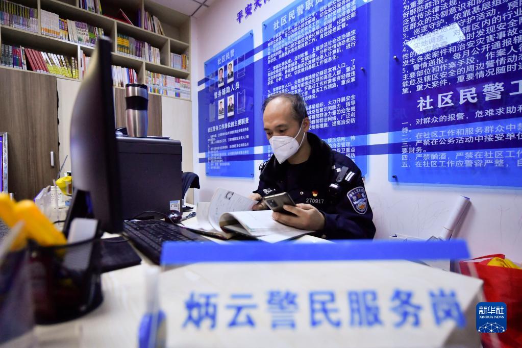 1月7日,在富方園社區警務室,陳炳云更新轄區居民戶籍信息。