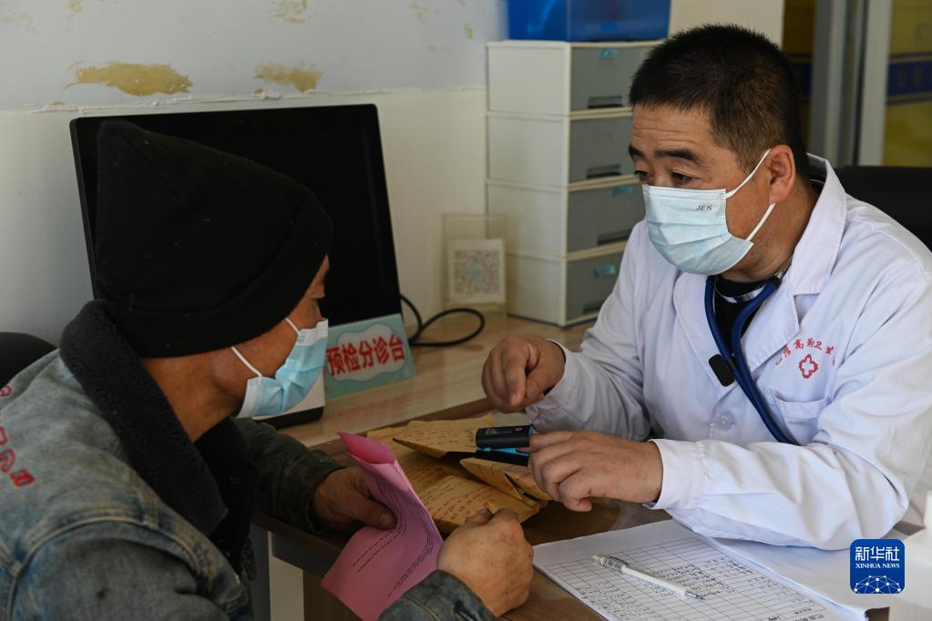 1月7日,在巴彥高勒衛(wèi)生院,姚春明指導牧民使用指夾式血氧儀。