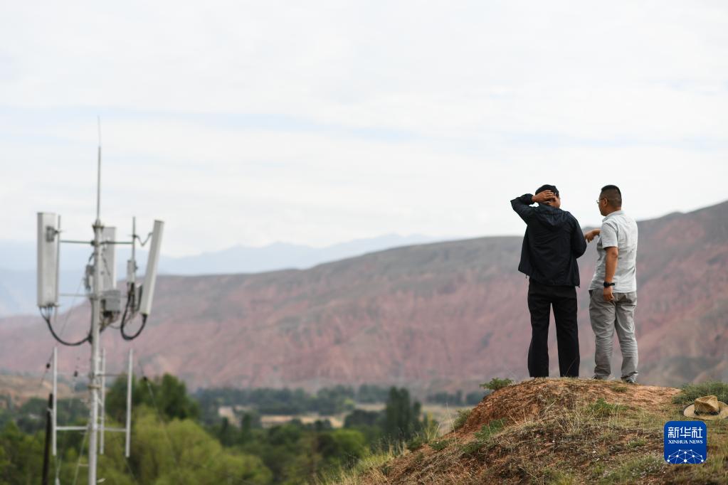 青海聯(lián)通工作人員為孫海云(左)介紹新安裝的千兆光網(wǎng)設(shè)備(2021年7月15日攝)。