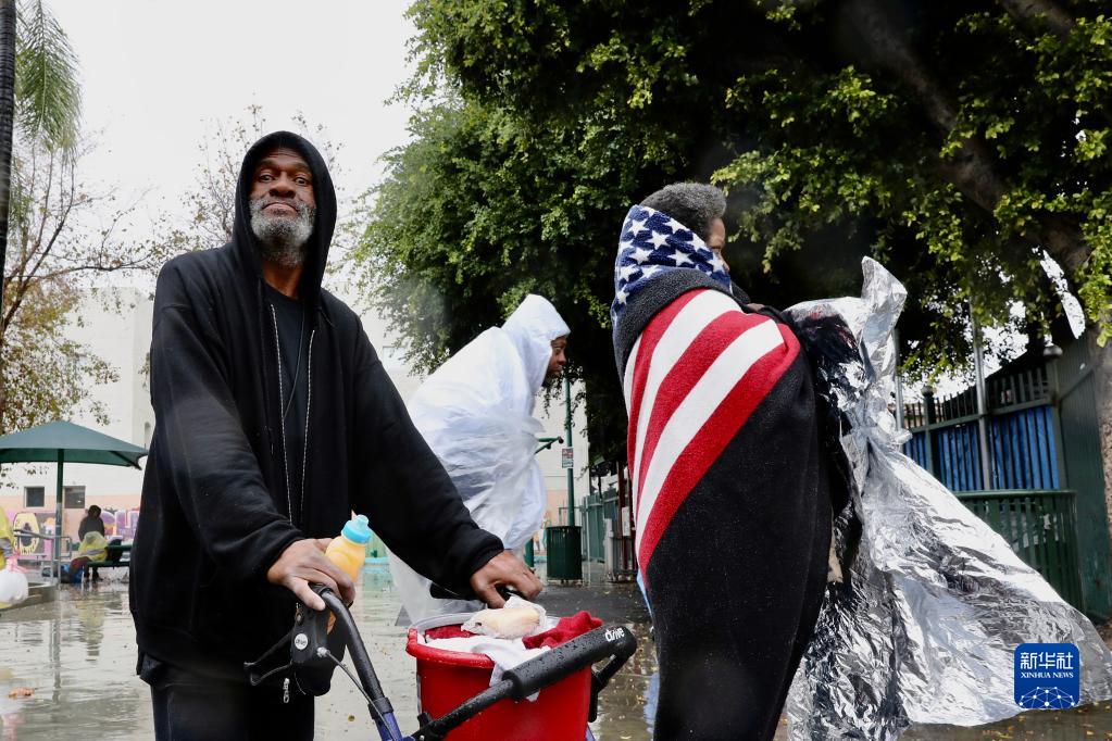 這是1月10日在美國洛杉磯市中心拍攝的無家可歸者。