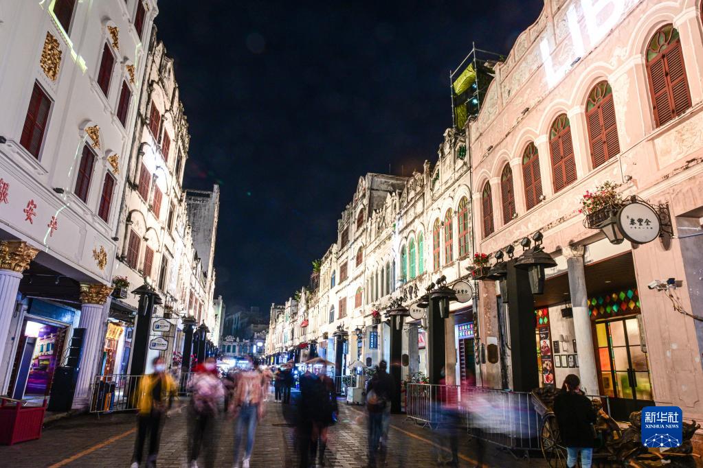 游客在海口騎樓老街游玩(2022年12月31日攝)。
