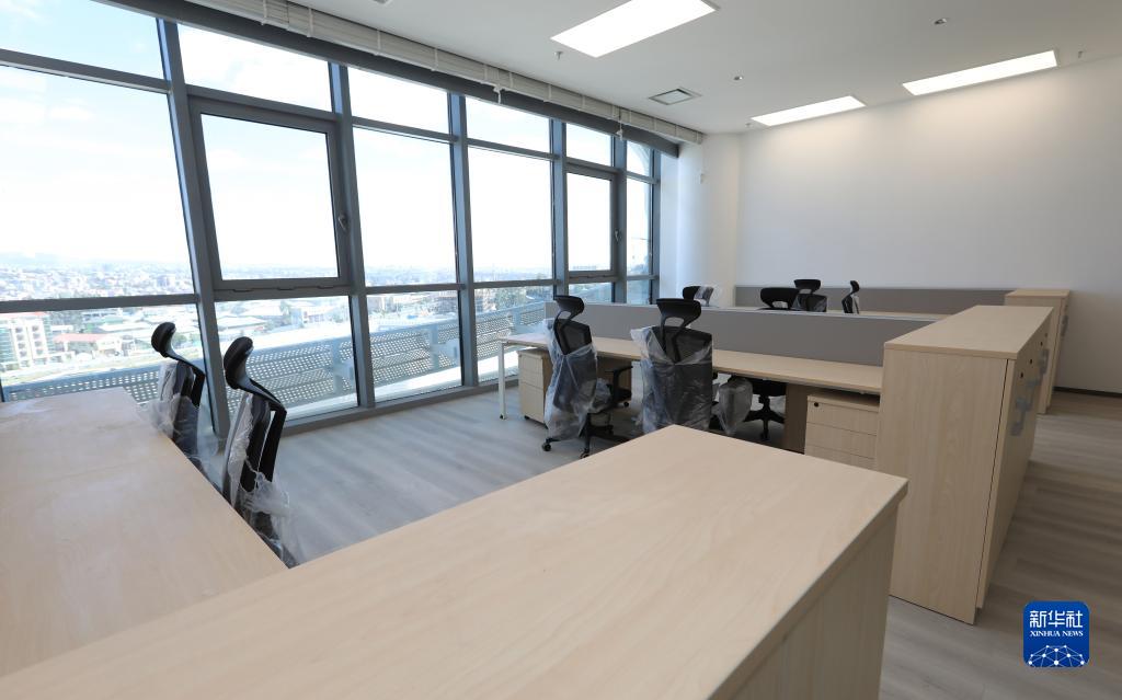 這是1月8日在埃塞俄比亞首都亞的斯亞貝巴拍攝的非洲疾控中心總部大樓內(nèi)的辦公室。