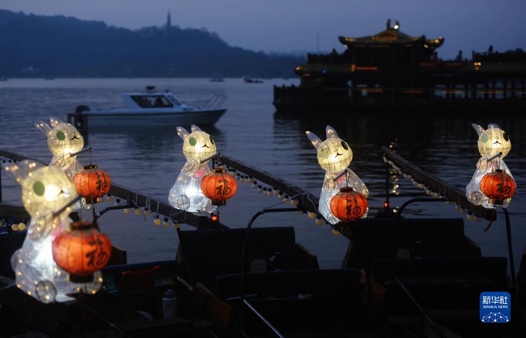 隨著農歷癸卯兔年臨近,日前,30艘裝有“玉兔燈”的手劃船集中亮相杭州西湖,供市民游客乘坐、賞燈游玩,熱熱鬧鬧迎接新春佳節。