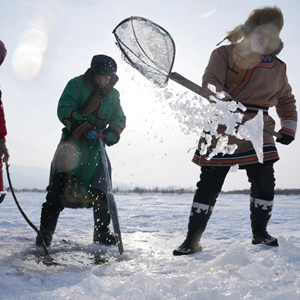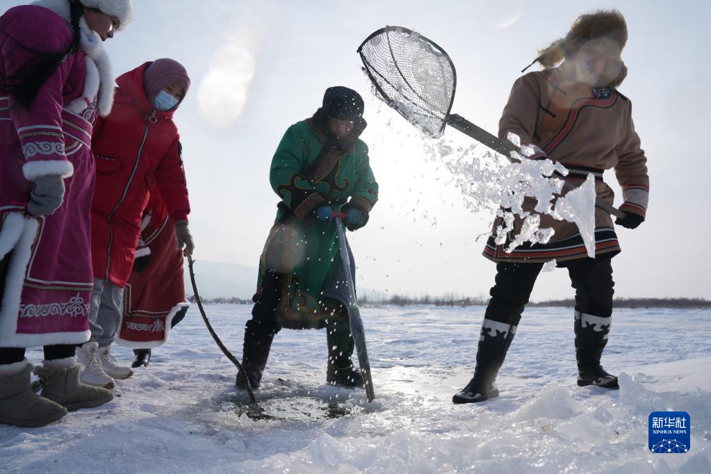 赫哲族是我國人口較少民族之一,世居黑龍江、烏蘇里江、松花江流域,因地處祖國東方,被稱為“守望太陽的民族”。春節臨近,在赫哲族聚居區之一黑龍江省撫遠市,一些赫哲族群眾開展冰湖冬捕、雪地“頂杠”、“魚王角力”等活動,展現赫哲族的傳統民俗。