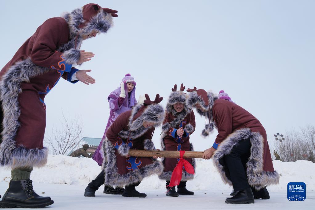 赫哲族是我國人口較少民族之一,世居黑龍江、烏蘇里江、松花江流域,因地處祖國東方,被稱為“守望太陽的民族”。春節臨近,在赫哲族聚居區之一黑龍江省撫遠市,一些赫哲族群眾開展冰湖冬捕、雪地“頂杠”、“魚王角力”等活動,展現赫哲族的傳統民俗。
