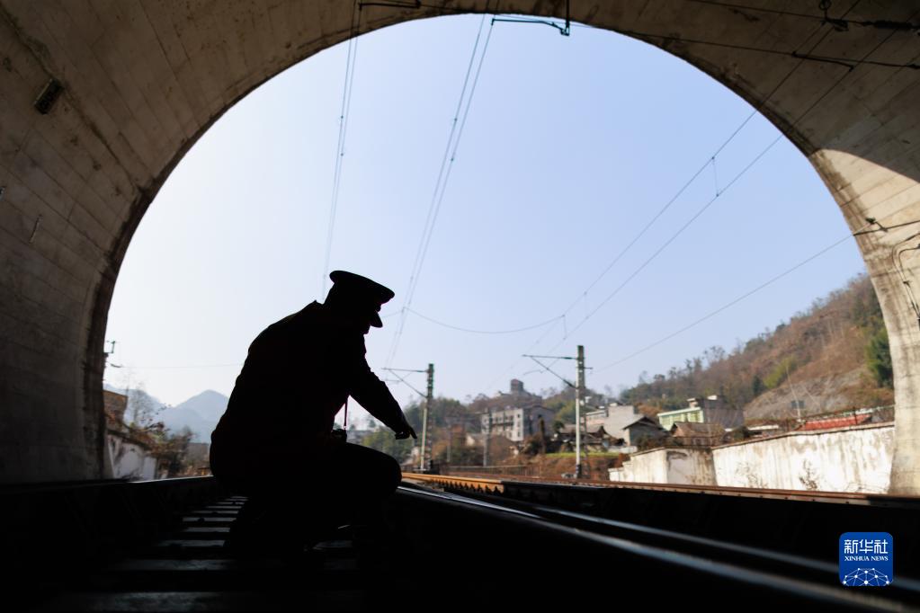 毛忠輝在隧道內維護設備(1月11日攝)。