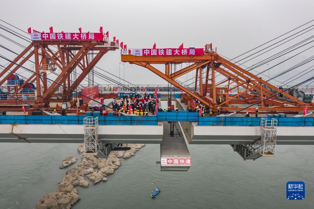 這是李家沱長江復線橋合龍施工作業現場(1月12日攝,無人機照片)。