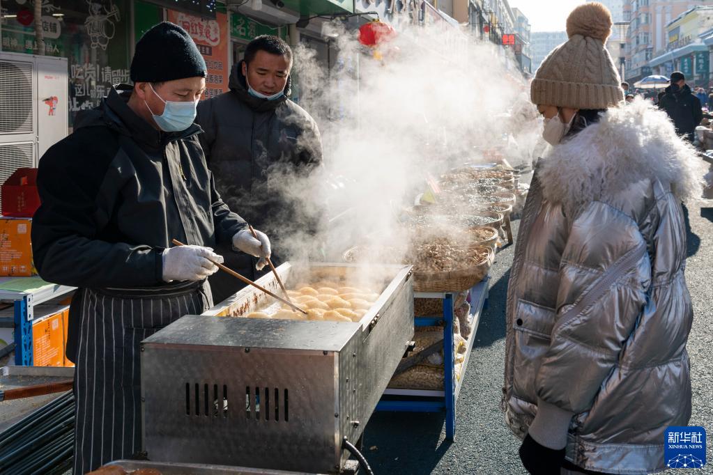 春節(jié)臨近,黑龍江省綏芬河市龍須溝步行街的年貨大集十分熱鬧。不少市民前來(lái)選購(gòu)年貨,迎接新春的到來(lái)。