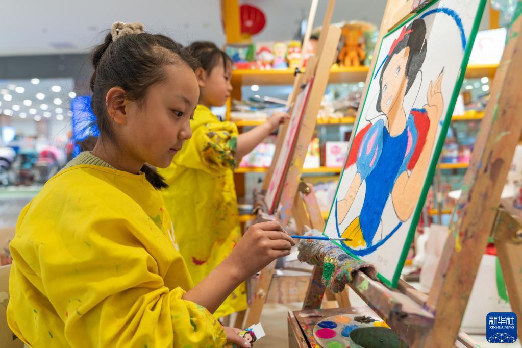在拉薩城關區萬達廣場,小朋友在一家美術工作室學習畫畫(1月11日攝)。