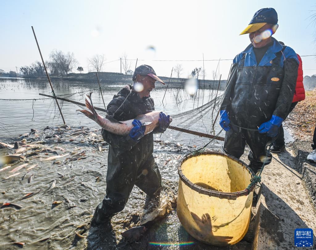 1月12日,泉慶村的養殖戶在清塘捕魚。