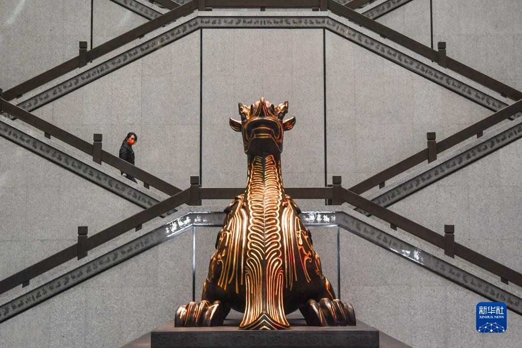 1月12日,觀眾在大云山漢王陵博物館內參觀。