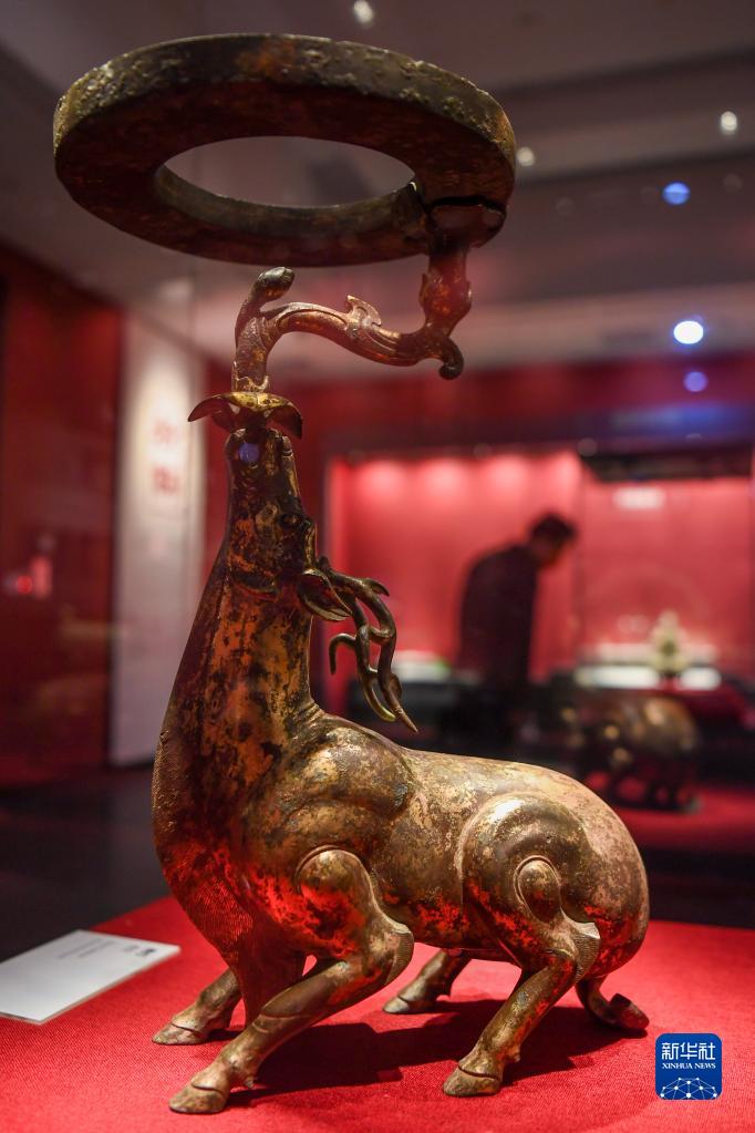 這是1月12日在大云山漢王陵博物館內(nèi)拍攝的西漢“鹿燈”。