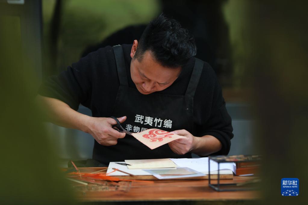 春節(jié)臨近,在福建省武夷山市,用傳統(tǒng)竹編技藝制作的“福”字竹編產品受到市場歡迎,接到不少訂單。當?shù)刂窬幖妓嚬そ臣泳o制作“福”字竹編產品,以滿足市場需求。