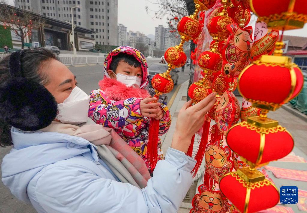 臨近春節(jié),各地年貨市場熱熱鬧鬧,人們忙著選購新春飾品。