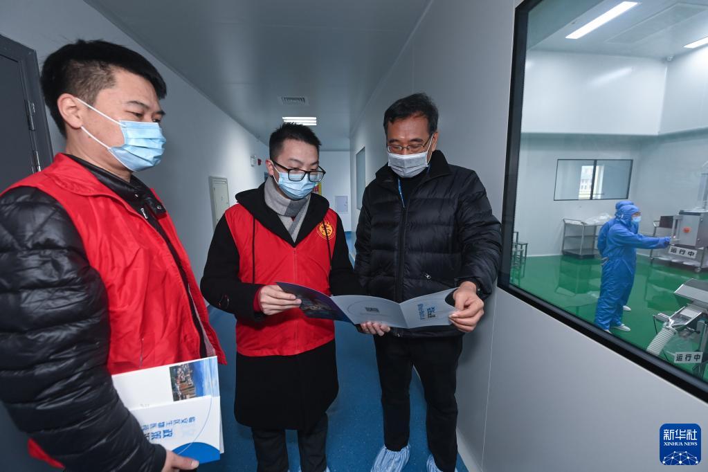 1月13日,在位于杭州市臨安區(qū)錦南新城的浙江大冢制藥有限公司內(nèi),錦南新城管委會(huì)“助企紓困”小分隊(duì)的黨員志愿者在給企業(yè)負(fù)責(zé)人(右一)講解惠企政策。