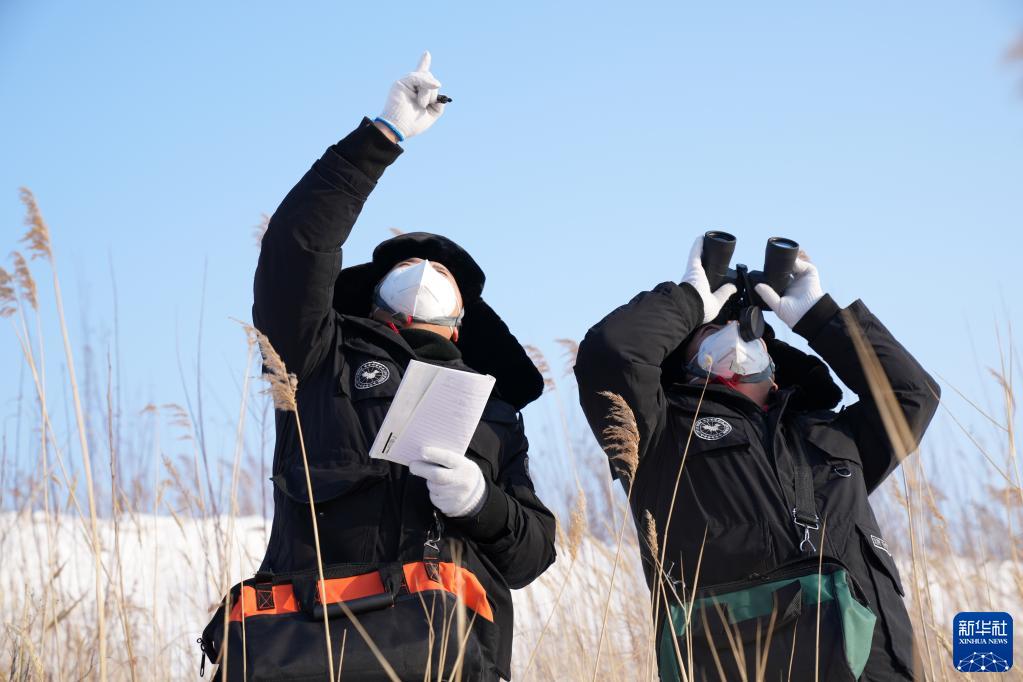 1月12日,國網撫遠市供電分公司抓吉供電所所長白樺先(右)和工友費義偉在巡視東極線。