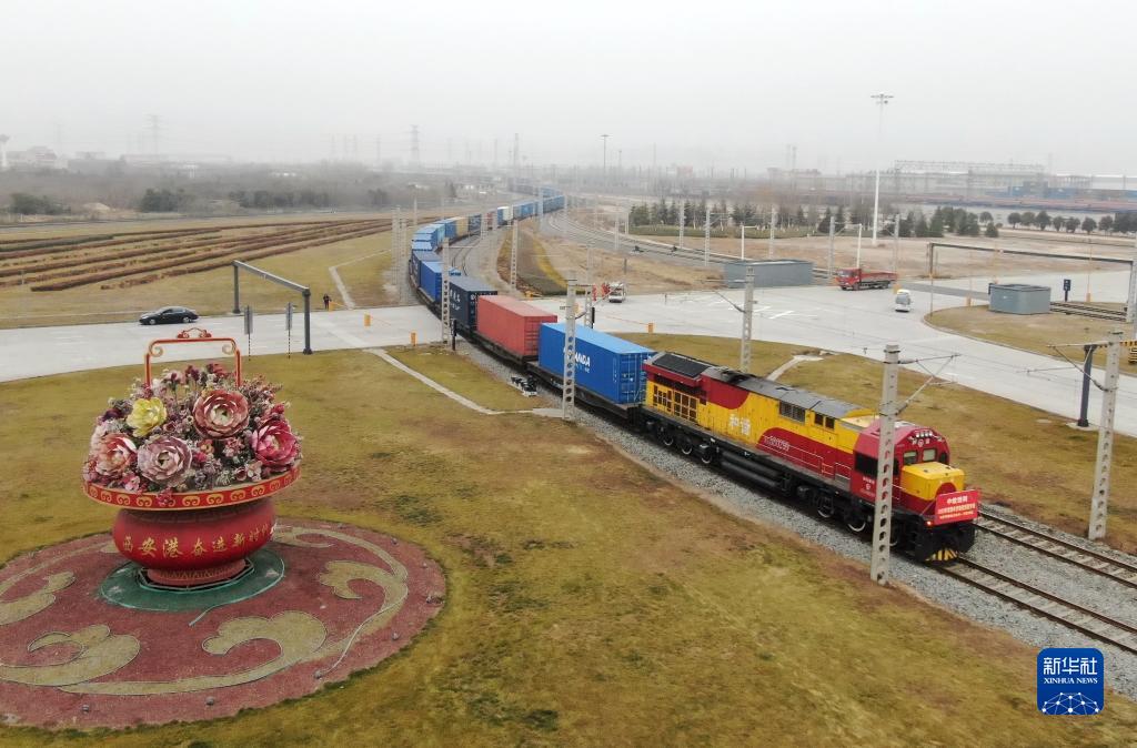 1月13日上午,滿載來自哈薩克斯坦1300噸面粉的中歐班列駛入西安國際港站貨場,標志著2023年首趟中歐班列年貨物資返程專列順利抵達西安,為即將到來的春節拉來了“洋年貨”。