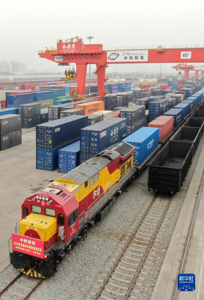 1月13日上午,滿載來自哈薩克斯坦1300噸面粉的中歐班列駛?cè)胛靼矅H港站貨場,標(biāo)志著2023年首趟中歐班列年貨物資返程專列順利抵達西安,為即將到來的春節(jié)拉來了“洋年貨”。