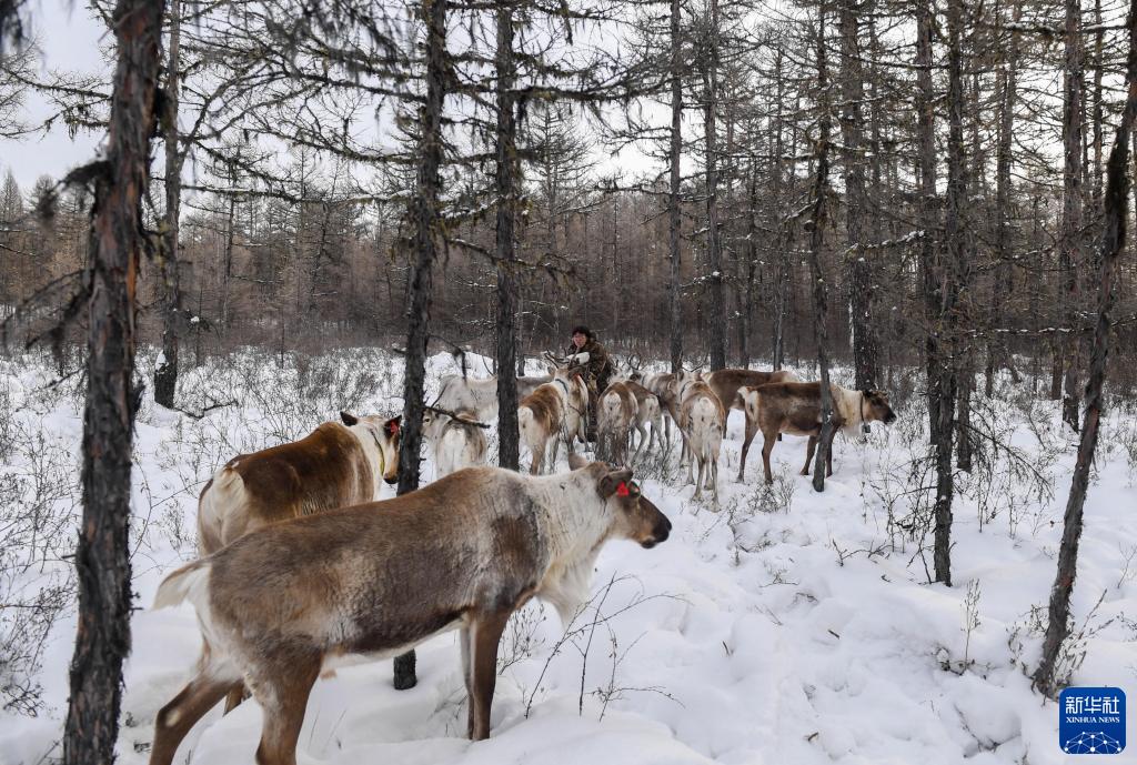 1月12日,覺樂的鹿群在山林深處覓食。新華社記者 彭源 攝