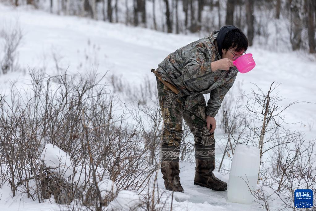 1月12日,覺樂飲用從冰包子里取的水。新華社記者 費茂華 攝