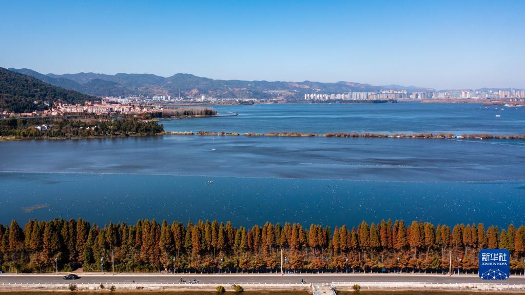 1月12日拍攝的昆明滇池一景(無人機照片)。