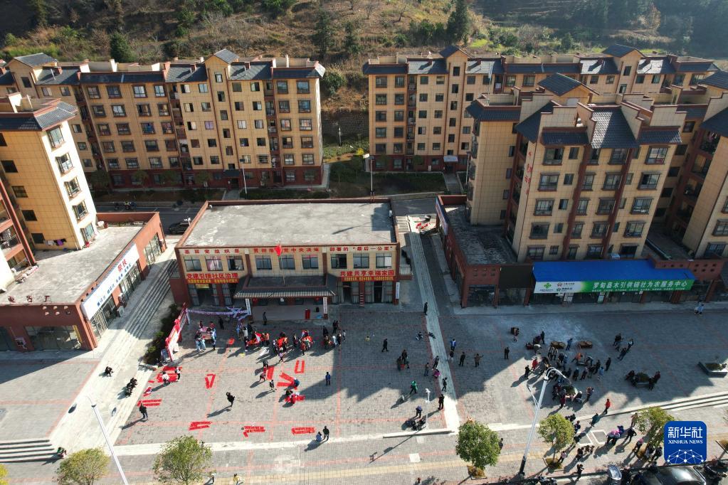 1月13日拍攝的羅甸縣木引鎮康夢家園迎春活動現場(無人機照片)。
