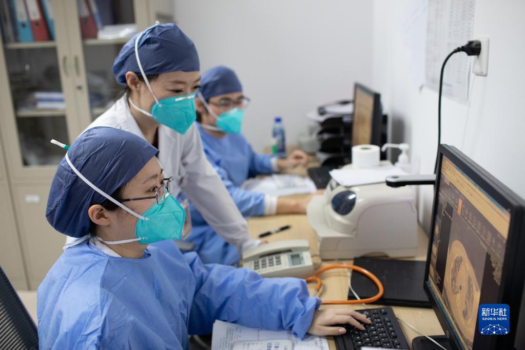 1月12日,在復旦大學附屬華山醫院虹橋院區急診搶救室醫生辦公室,醫生查看患者的胸部CT。