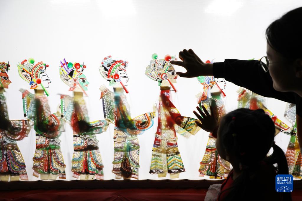 1月13日,市民帶著孩子在唐山市豐潤區文化館近距離感受皮影藝術。