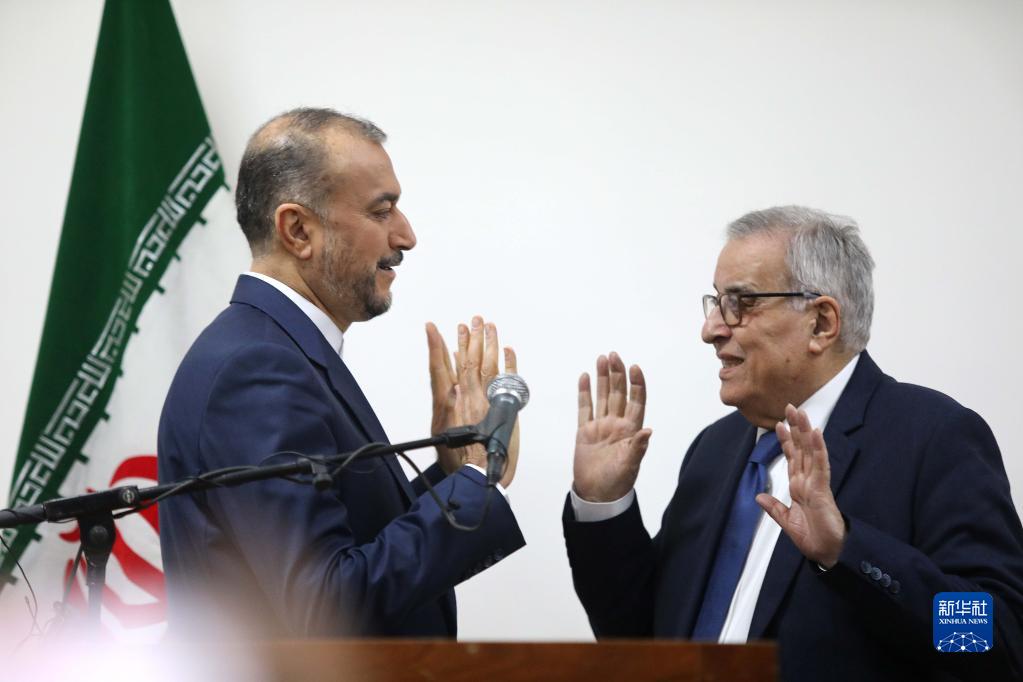 1月13日,在黎巴嫩貝魯特,黎巴嫩外長哈比卜(右)和伊朗外長阿卜杜拉希揚共同出席新聞發布會。