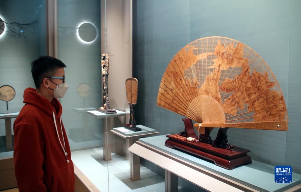 1月13日,孩子在家長(zhǎng)帶領(lǐng)下在江蘇蘇州博物館西館參觀。