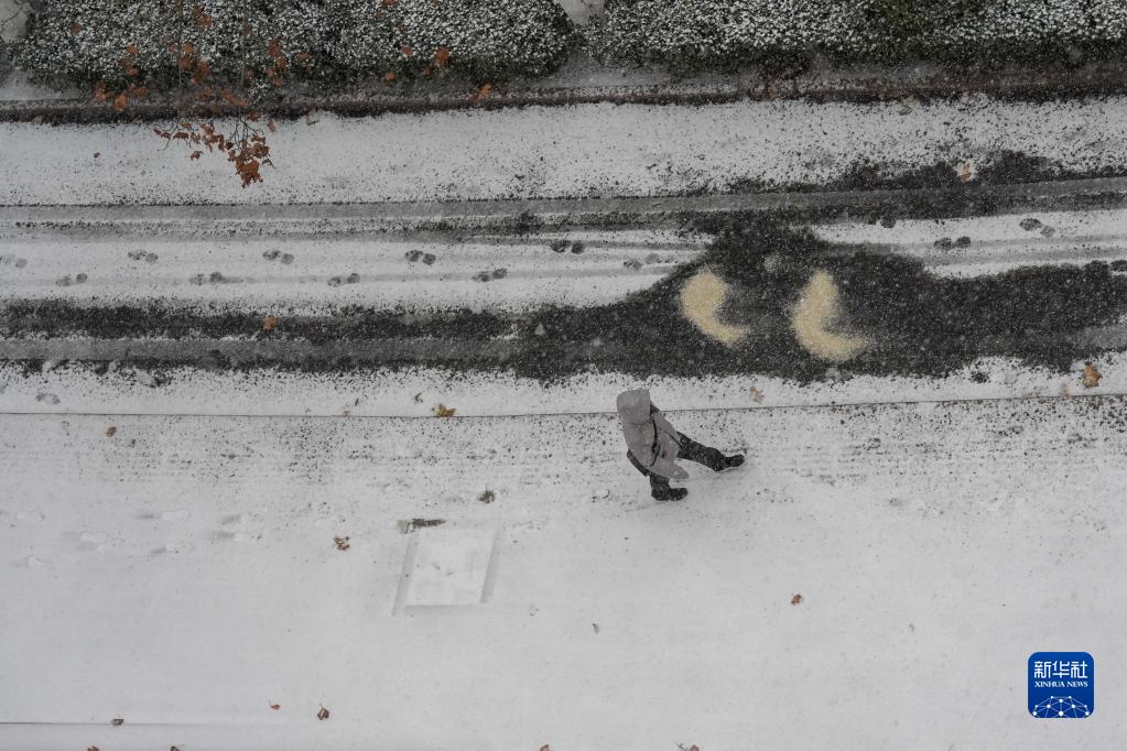 當日,受冷空氣影響,山東省濟南市迎來降雪天氣。