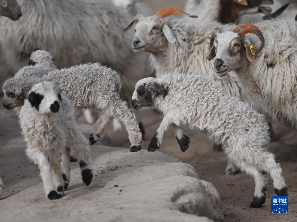 1月13日,在青海湖湖東種羊場,小羊羔在羊群中活動。