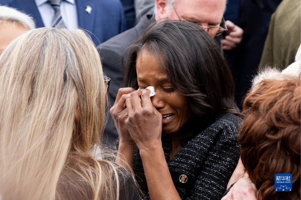 1月6日,在美國首都華盛頓的國會大廈外,一名前國會警察遺孀在紀念“國會山騷亂”兩周年紀念儀式上流淚。