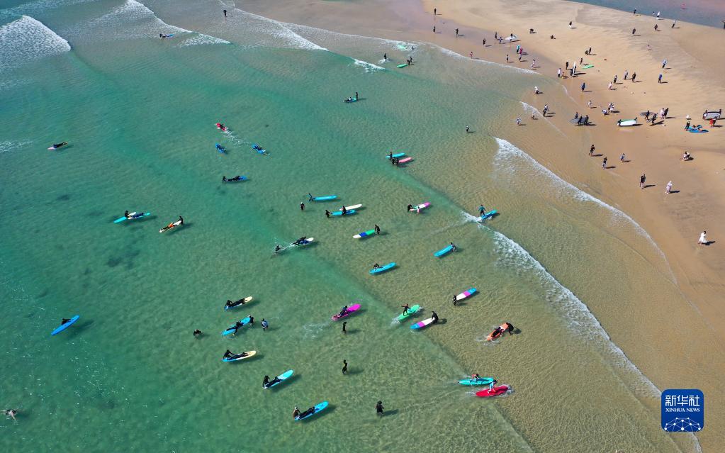 冬日的海南萬寧艷陽高照、溫暖如夏,各地游客來到這里體驗沖浪。得益于獨特的地理和氣候優勢,沖浪已成為海南萬寧旅游的一張靚麗名片。