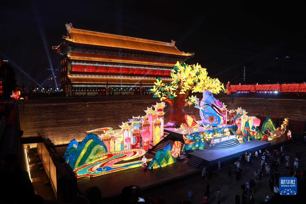 1月14日,人們在第36屆西安城墻新春燈會上參觀游玩。