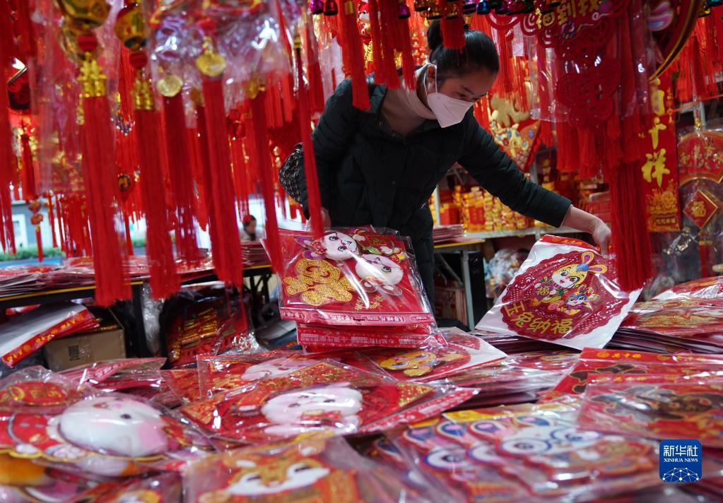 1月14日,在云南省昆明市,人們選購(gòu)春節(jié)飾品。
