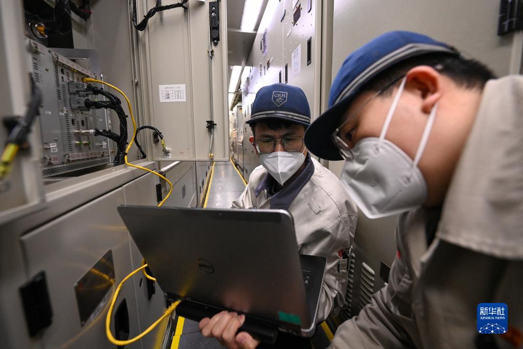 1月14日晚,在烏魯木齊車輛段動車組運(yùn)用所,機(jī)械師在動力車進(jìn)行動車組運(yùn)行數(shù)據(jù)分析。