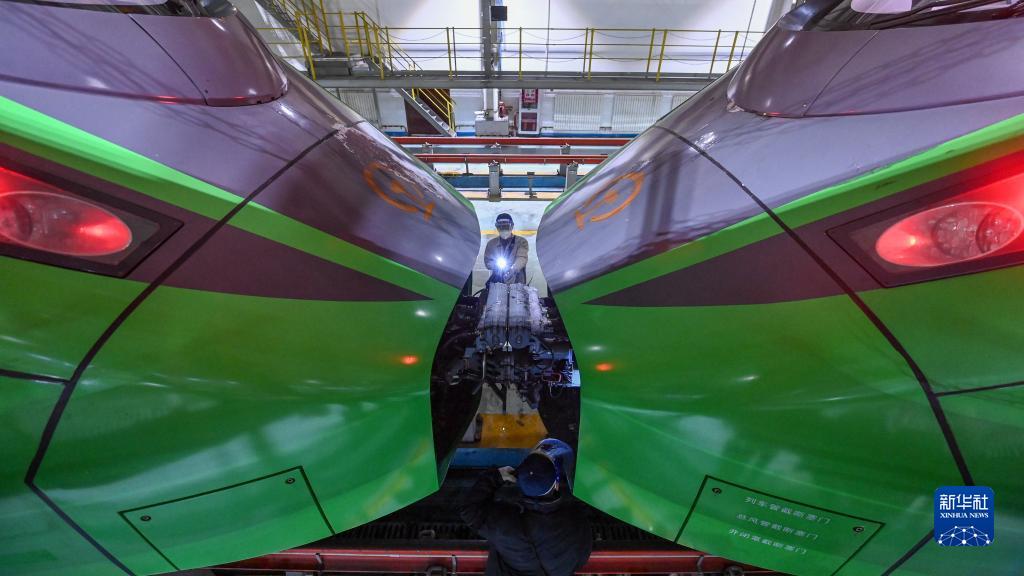 1月14日北方小年夜,烏魯木齊車輛段動(dòng)車組運(yùn)用所檢修庫(kù)內(nèi)燈火通明,白天馳騁天山南北的動(dòng)車在這里集結(jié),一群青年機(jī)械師在連夜進(jìn)行檢查、測(cè)試、維修工作,以保障動(dòng)車運(yùn)行安全。