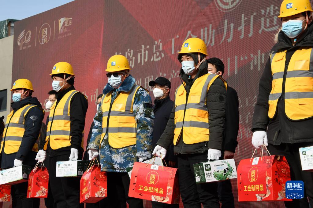 當日,山東省青島市總工會走訪部分重點工程項目工地,為春節(jié)期間堅守崗位的建設(shè)者們送上新春的祝福。
