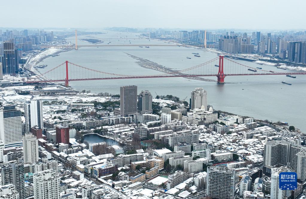 1月15日拍攝的武漢雪景(無人機照片)。